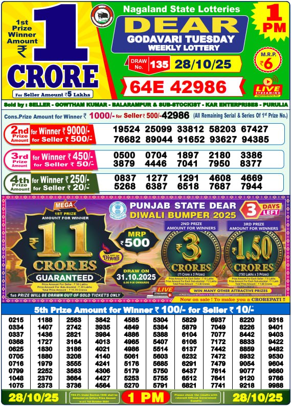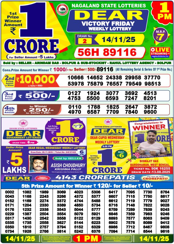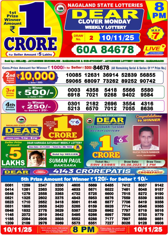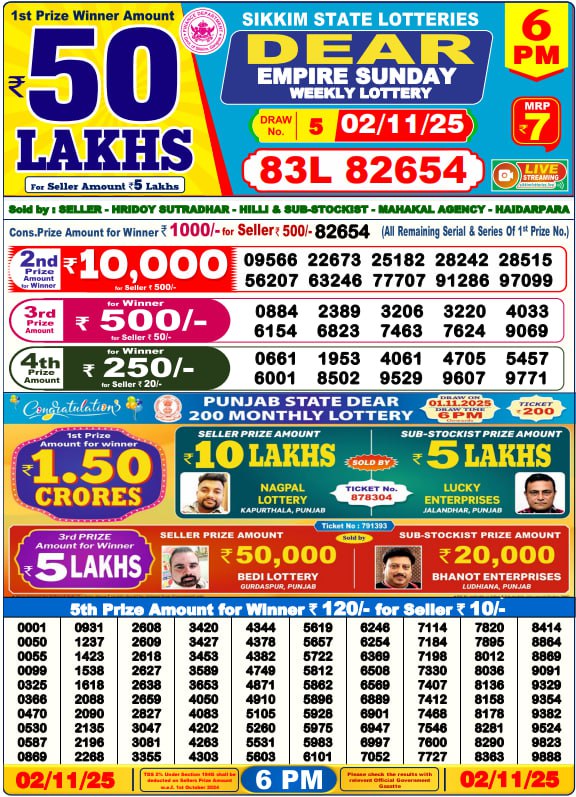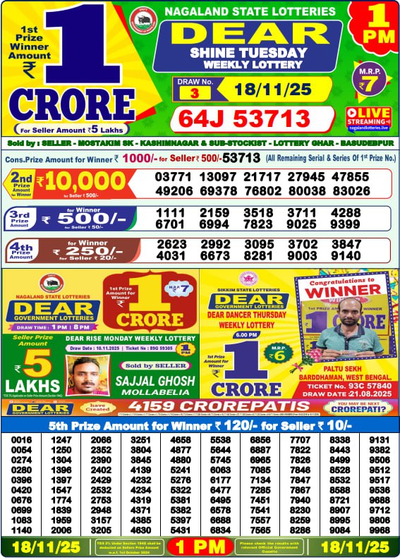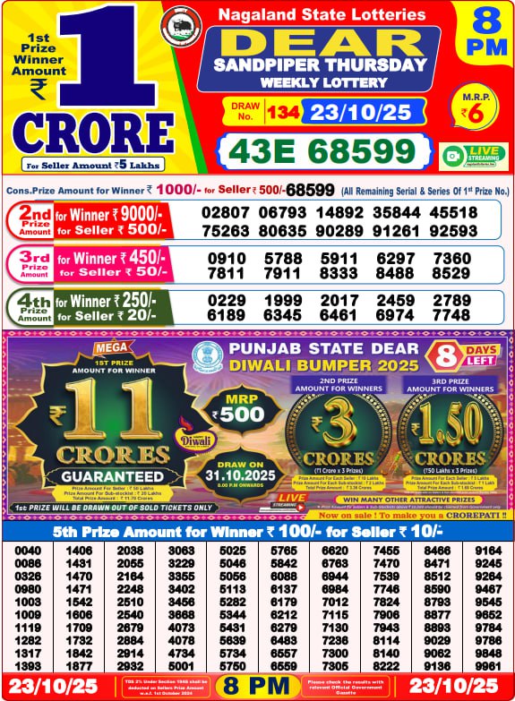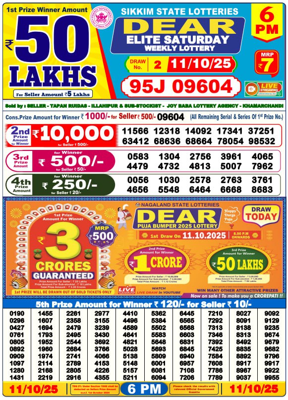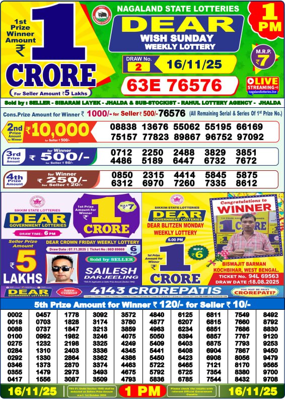 Bookmark this page for the latest information on Lottery Sambad and Nagaland State Lottery. Check official channels regularly for updated results and announcements.