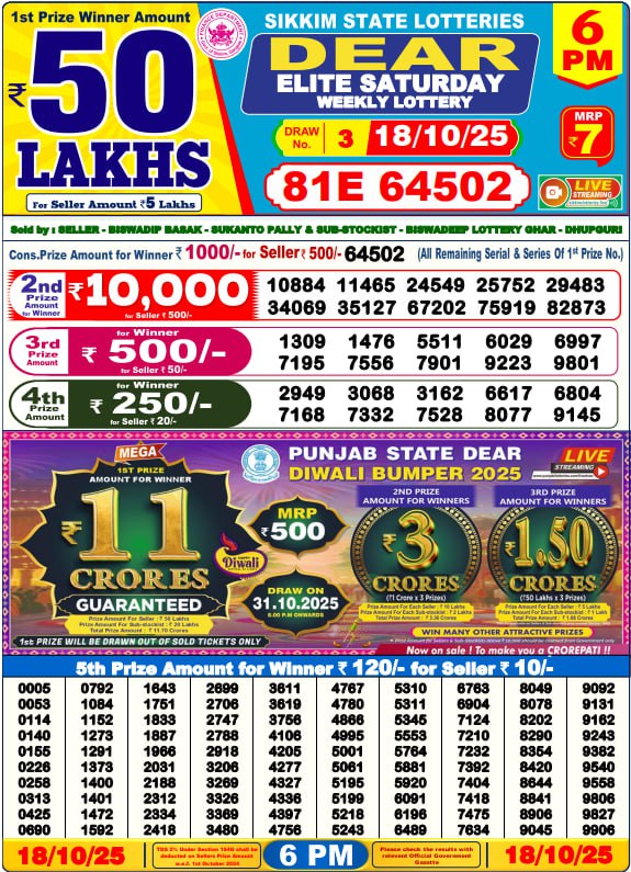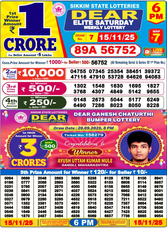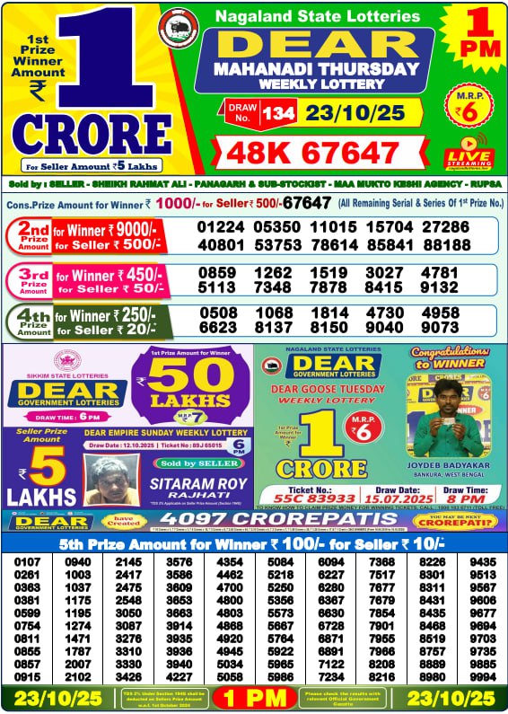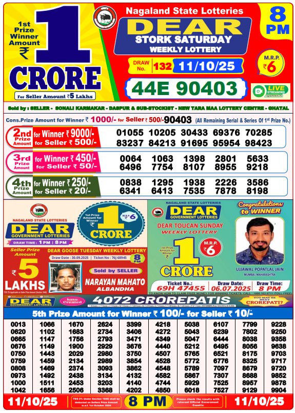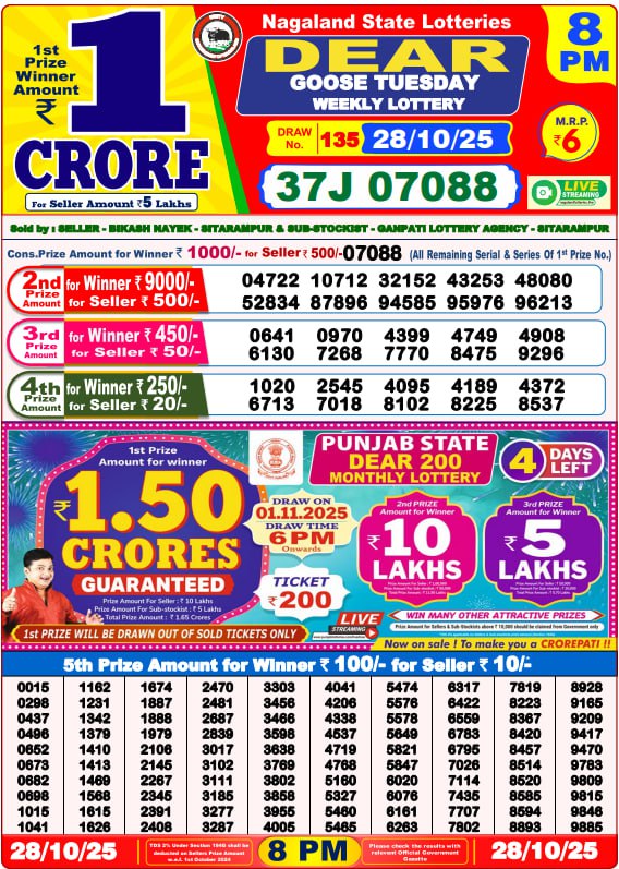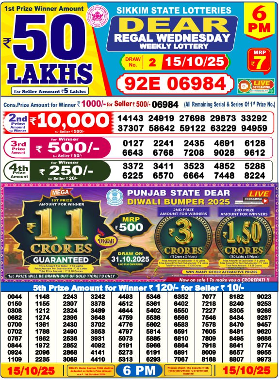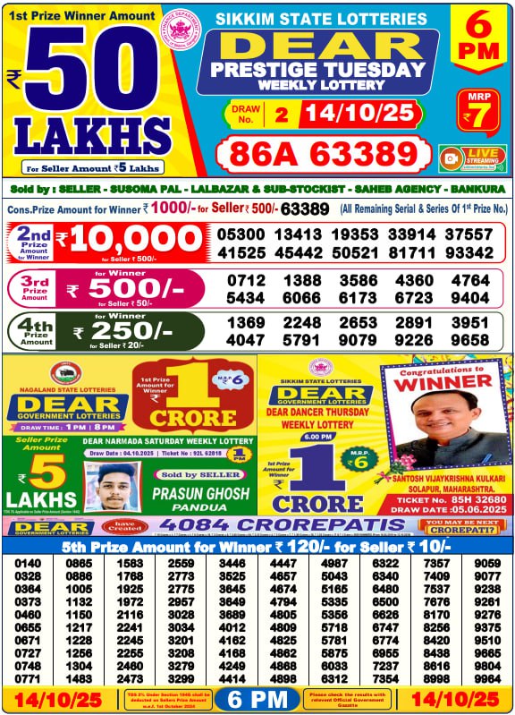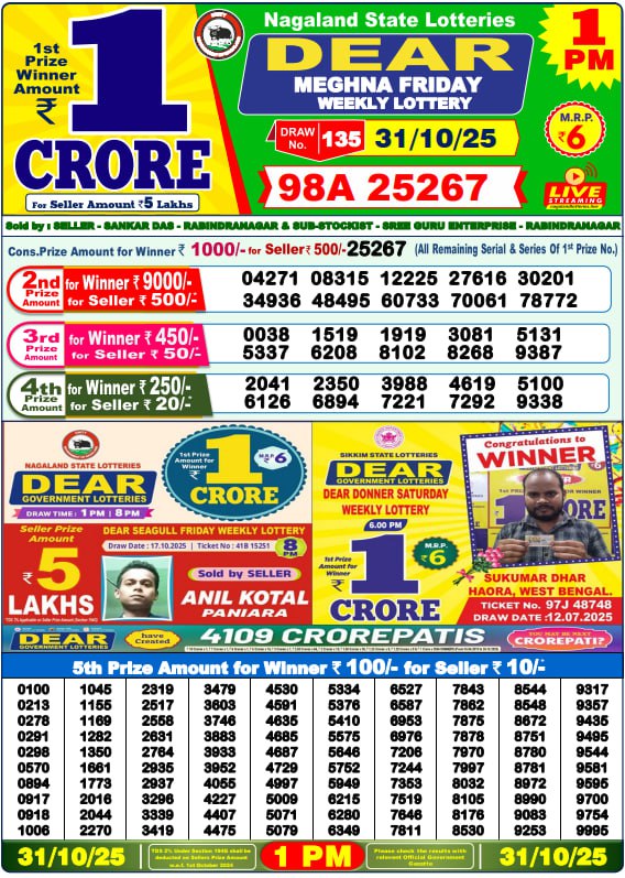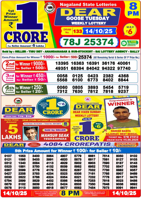 Bookmark this page for the latest information on Lottery Sambad and Nagaland State Lottery. Check official channels regularly for updated results and announcements.